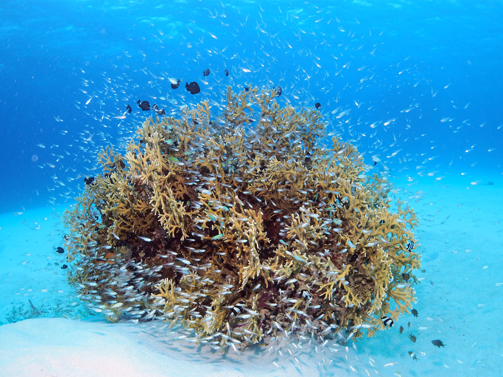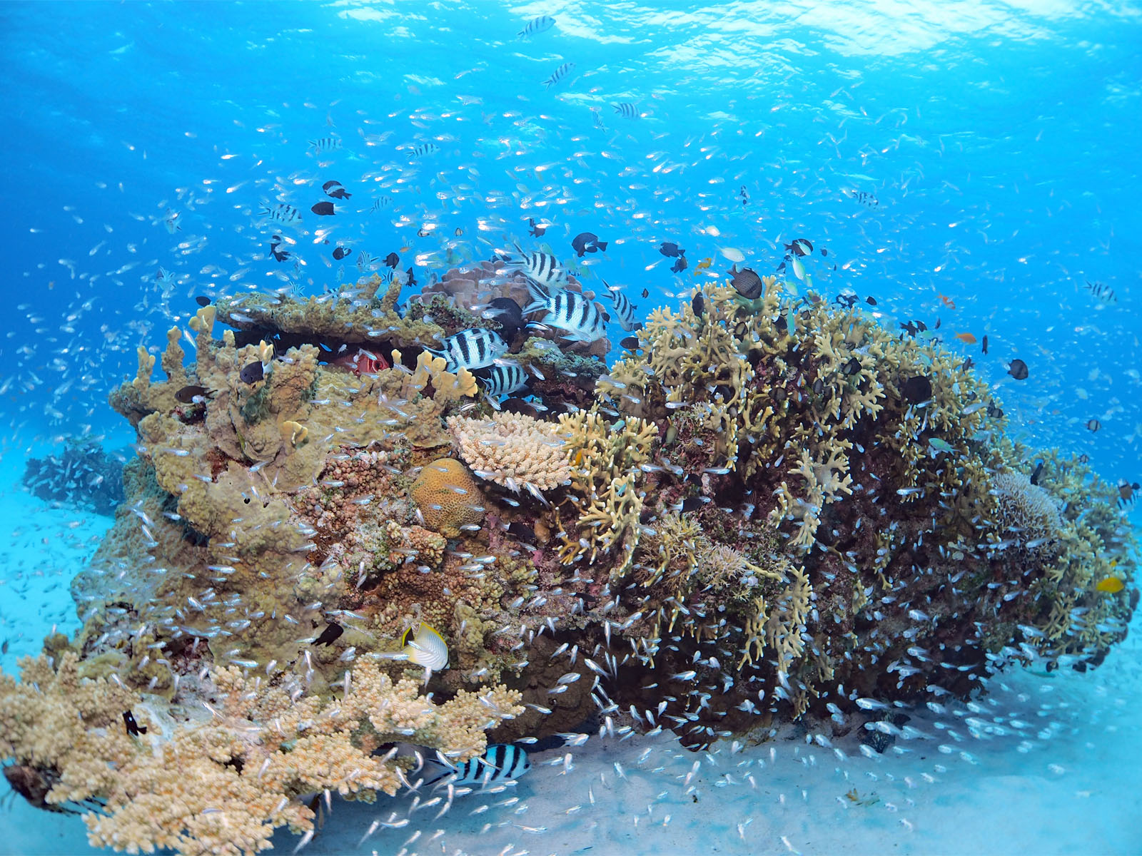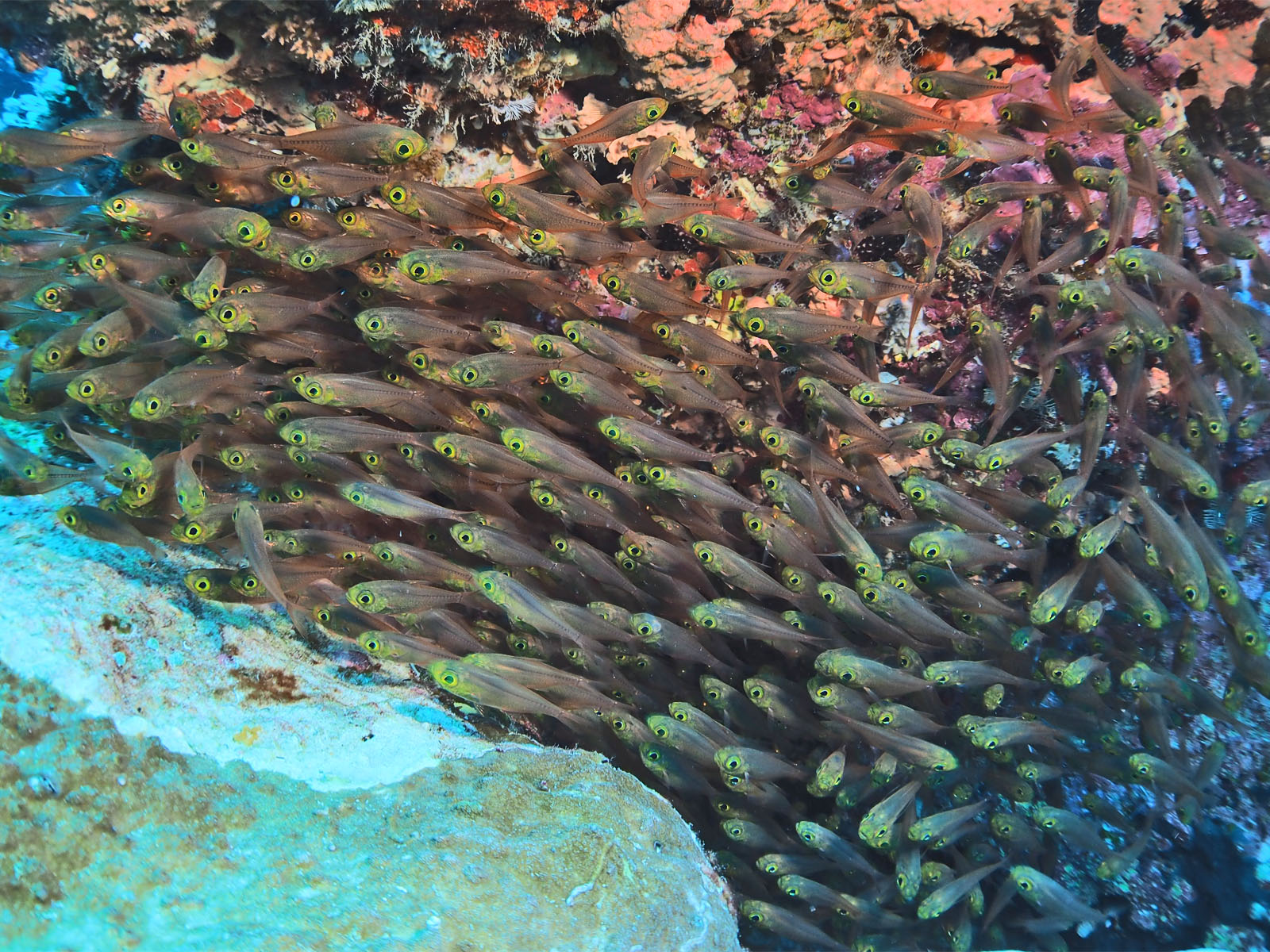 ①すごくたくさんの魚が群れる根、これはすごい!