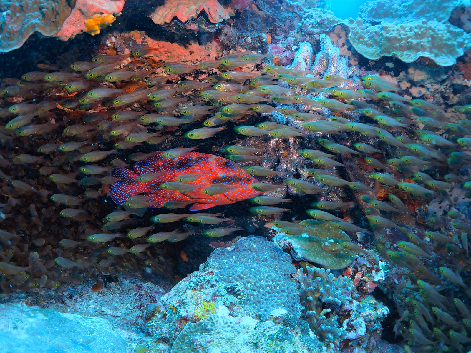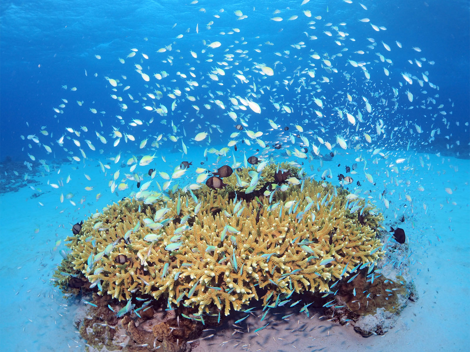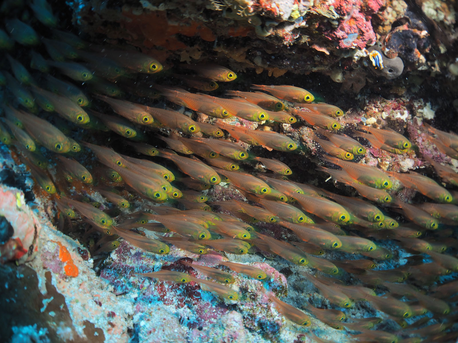 ①すごくたくさんの魚が群れる根、これはすごい!