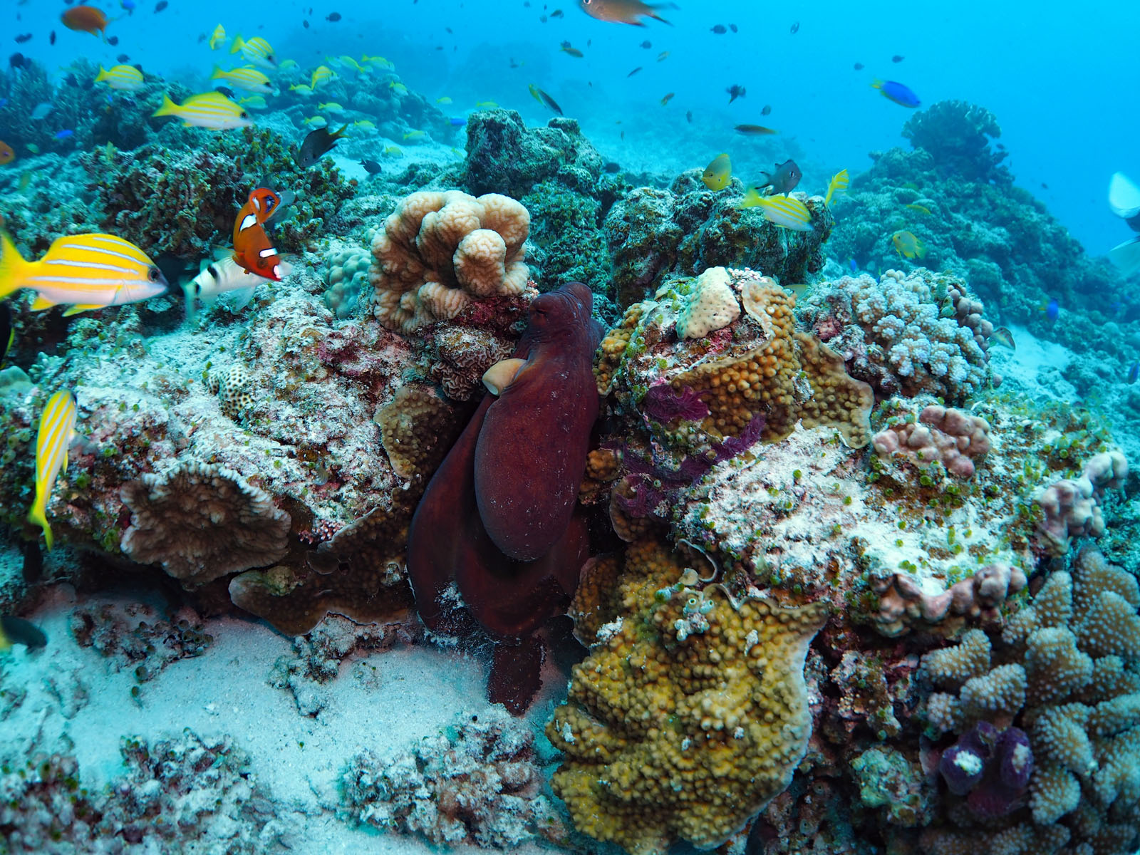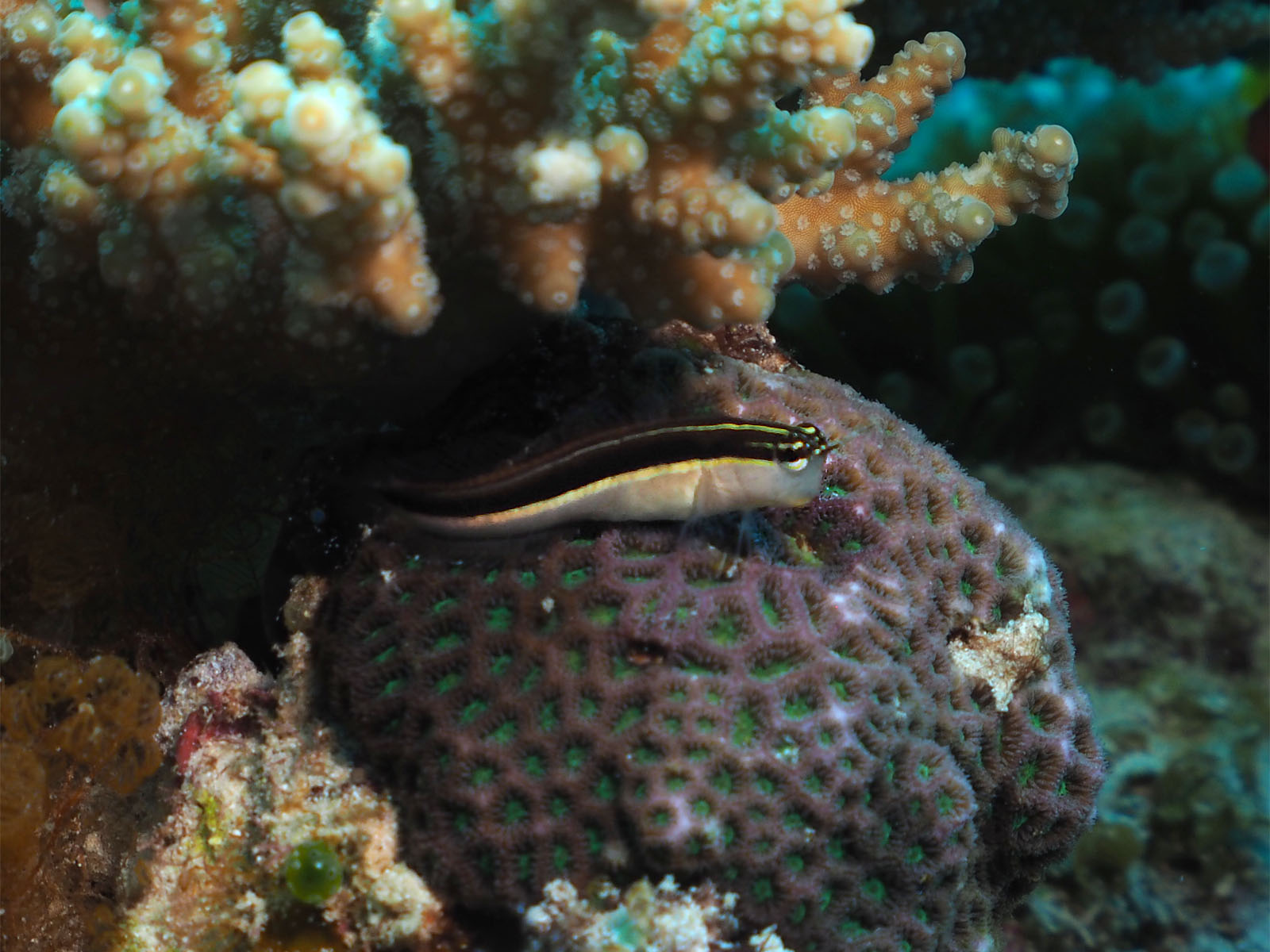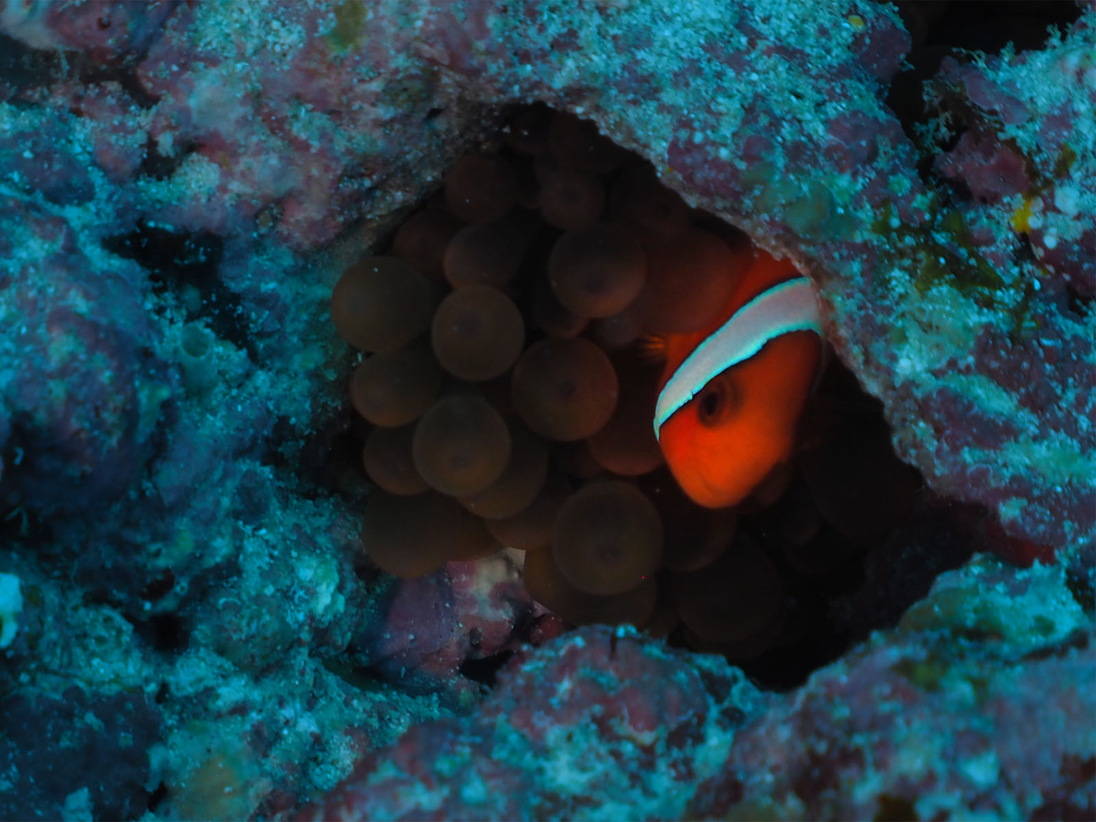 自分はワイド系なのでほとんど撮らなかったけど、別のゲストがハダカハオコゼをかなり時間をかけて撮っていて、それがライト2本使用での撮影。1本は広角で全体を照らして、もう1本はスポットライト的に使って魚がきれいに写るようにいろいろ角度を変えたりした。今までライトは動画に使うものだと思っていたけど、こういう使い方があるのは目からウロコ。後で聞いたら魚の目にキャッチライトまで考えているとかで、コンデジなのに見せてもらった写真はすごいうまかった。脱帽
