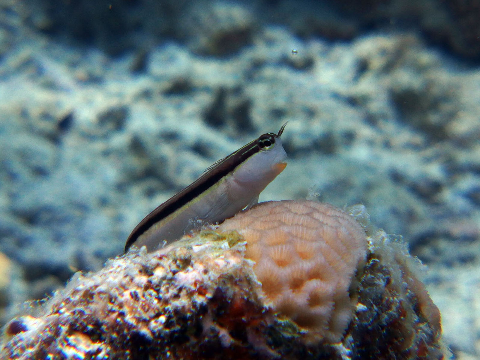 クロユリハゼはいつも動いているので通常の撮影ではベストな構図が難しいので、今回は連写モードで撮影して、その中からベストなものを選んでみました。ヒトスジギンポ、改めて見ると可愛い顔しる。