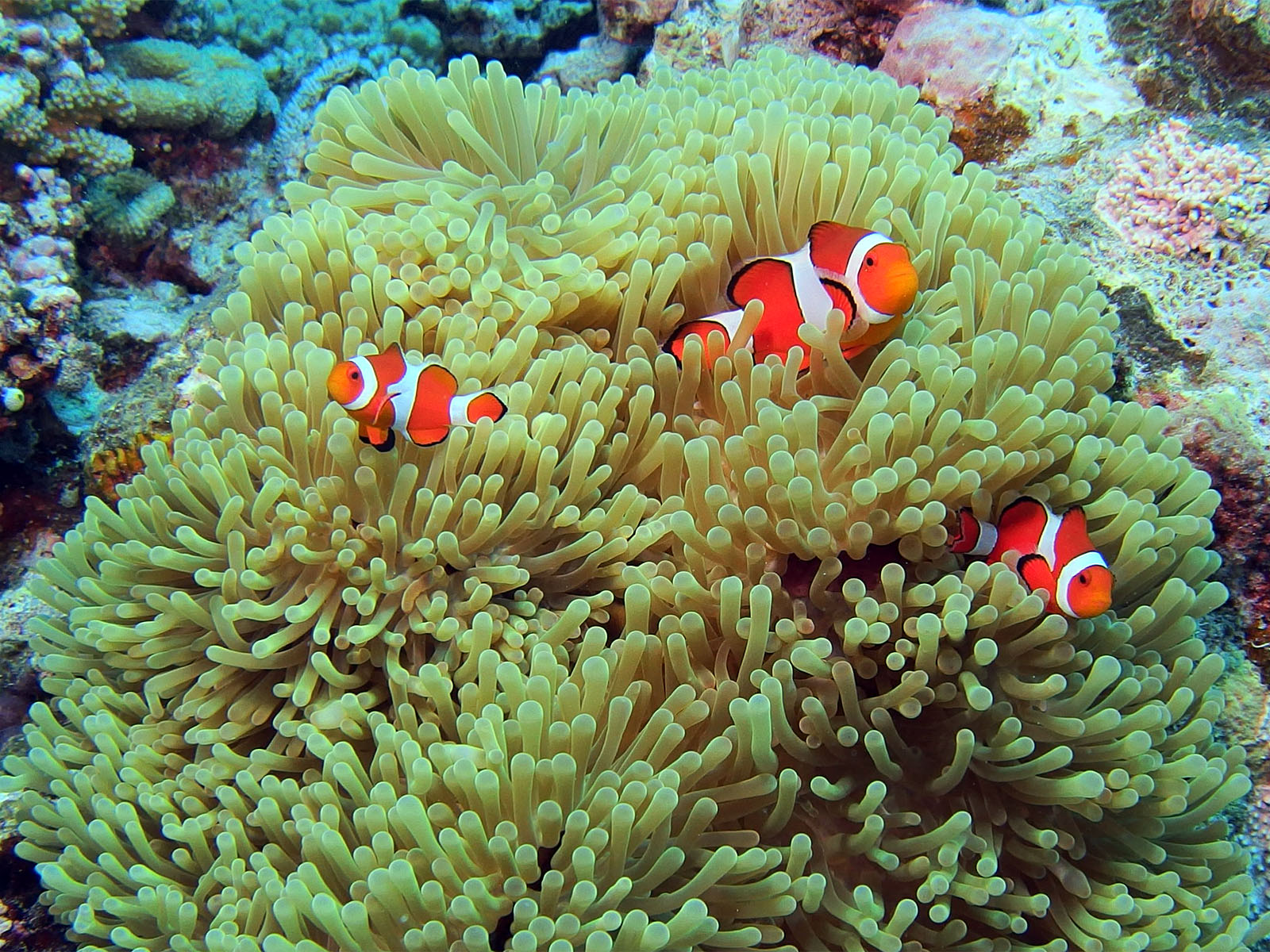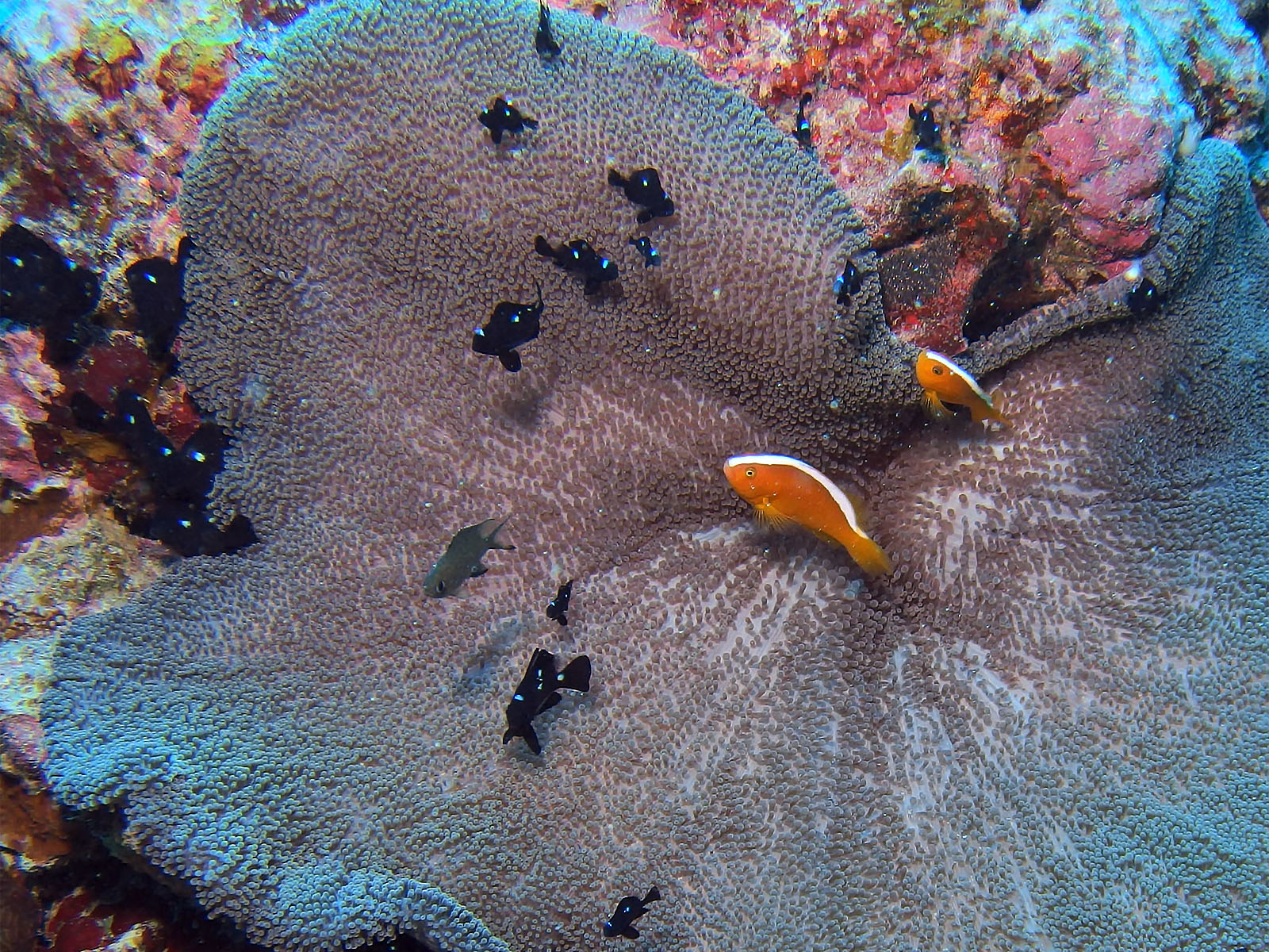 このセジロクマノミがいるイソギンチャクは30年以上生きているとか。それでどうりで大きいわけだ。何世代のクマノミが住んできているんだろう?