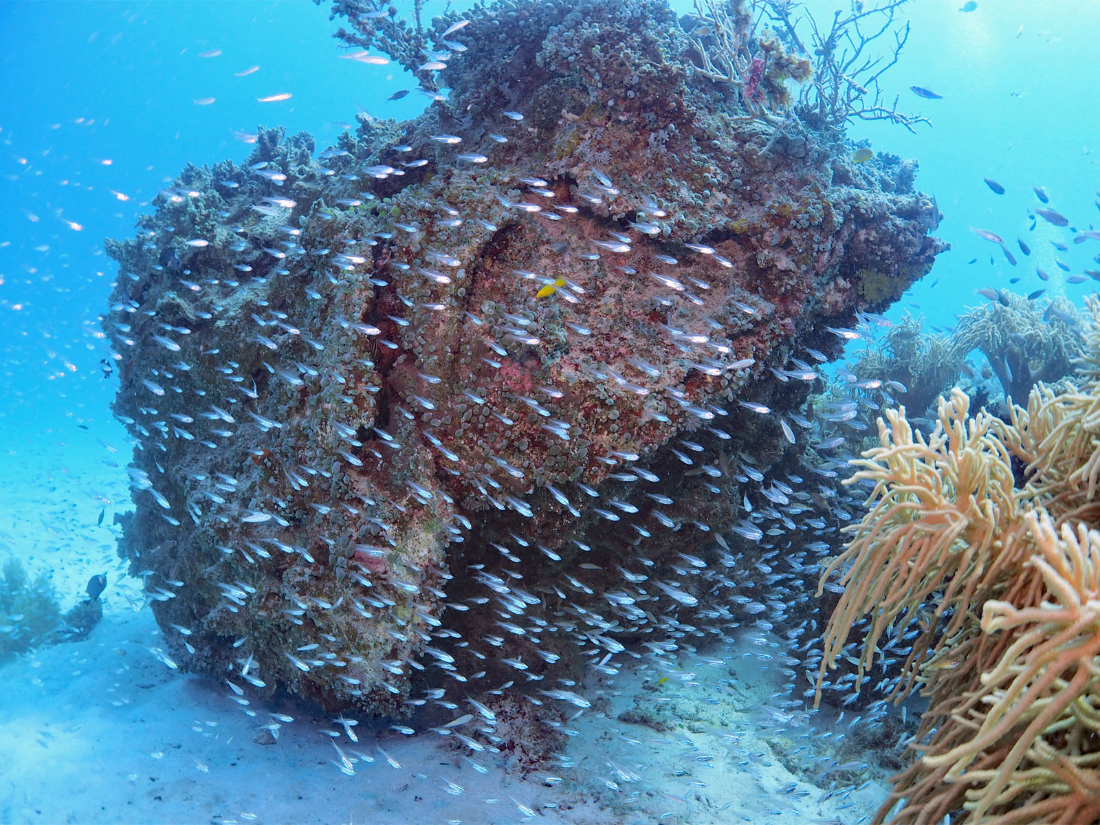 ①キンメモドキやスカシテンジクダイの群れ