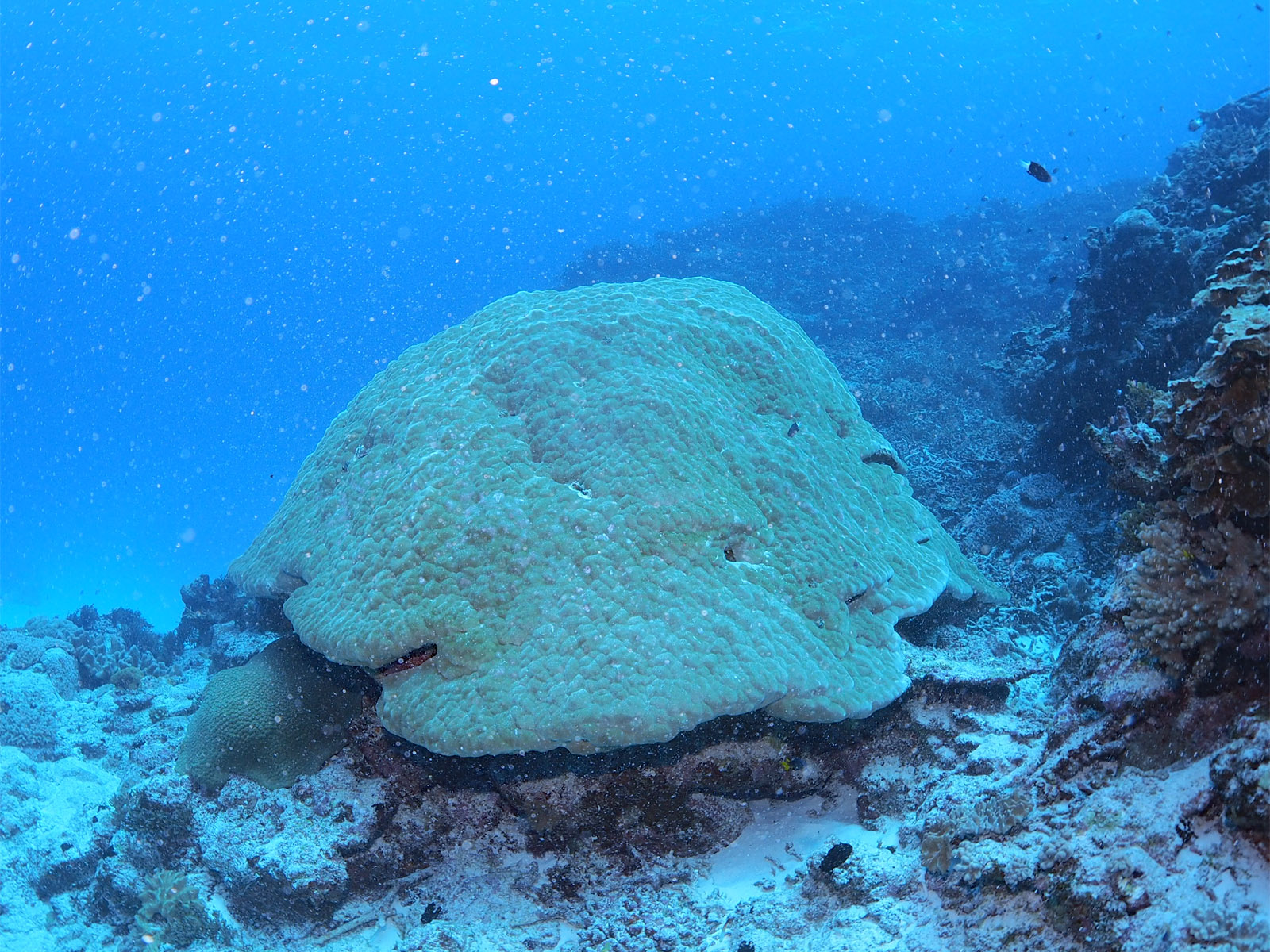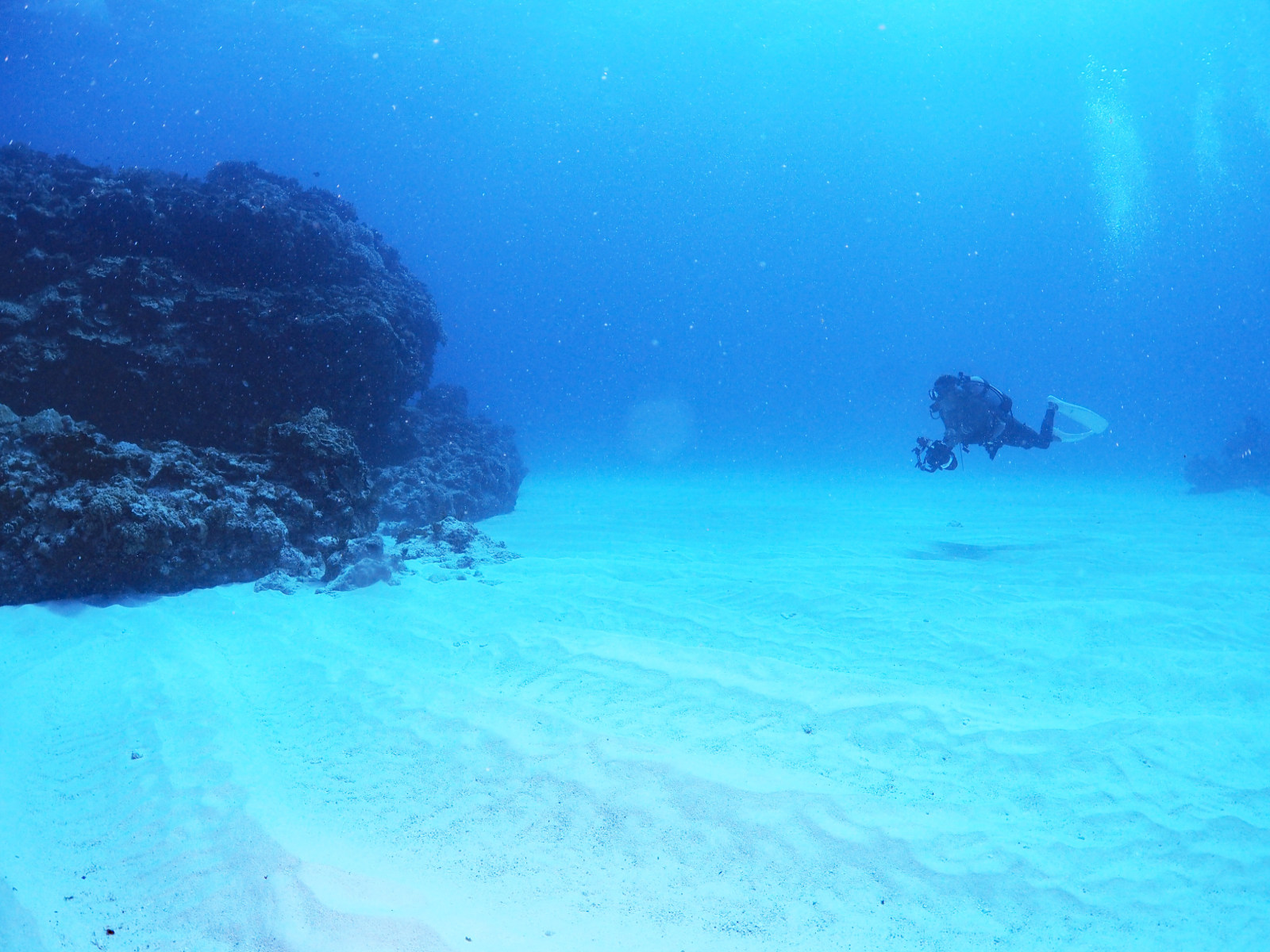 写真は難しいけど、白い砂地がきれいだった。しかし、、、、一見まったりそうに見えるけど、実は大潮ということもあって結構流れていて、砂地の上を移動するときは指を砂に入れてもあまりきかなくて、実はハードなダイビングなのでした。