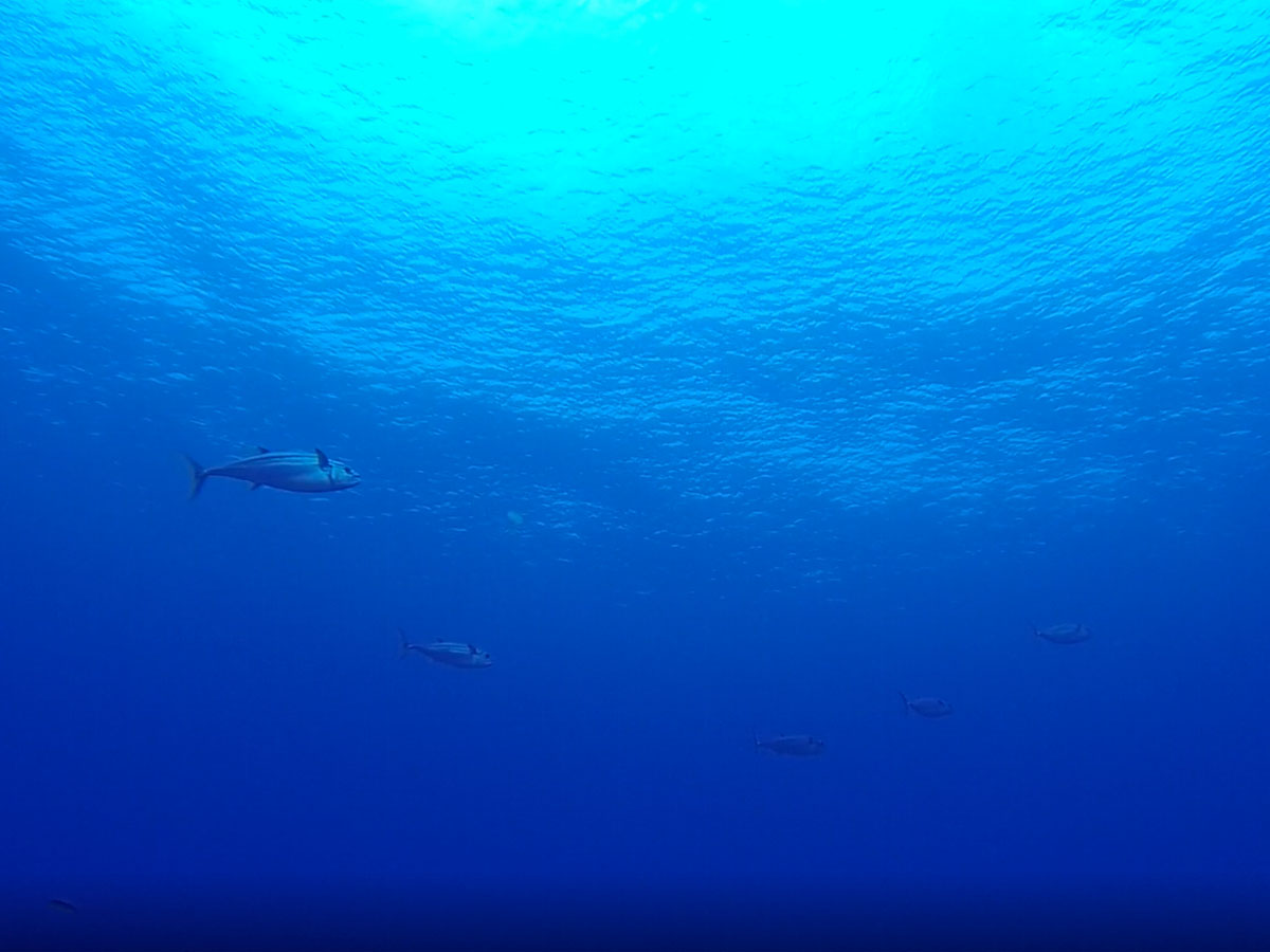 2本目も同じく三の根。今回はイソマグロの群れをじっくり見れたけど、まだちょっと数が少なめかな。でもまぁ今回はこれが目的で来たので満足。安全停止の時には360度ぐるっと真っ青な世界で、こういうのって良いんだよね-。また来たいな-