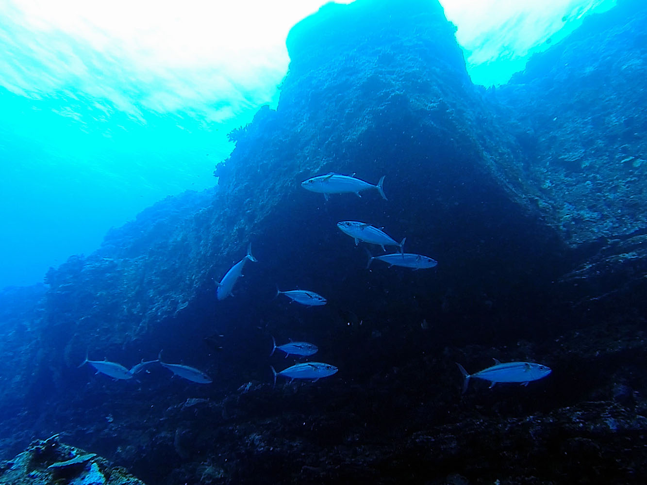 3本目は浅場の地形ポイントでまったり。太陽の光の差しこむのがきれいでした。